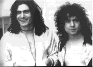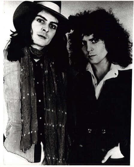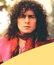 | Later in 1967 Marc and percussionist Steve Peregine Took formed an acoustic duo called Tyrannosaurus Rex. They made three albums, "My People Were Fair and Had Sky in Their Hair but Now They're Content to Wear Stars on Their Brows" (1968), "Prophets, Seers and Sages, the Angels of the Ages" (1968), and" Unicorn" (1969), then following an acrimonious American tour, split up. Steve Took died tragically in 1980 after choking on a cherry stone. It is alleged as a direct result of using a Tyrannosaurus Rex royalty cheque to purchase drugs. Marc brought in Mickey Finn as a replacement for the new album Beard of Stars (1970). This album also returned Marc to his electric roots, amid comments about him "selling out" like his hero Bob Dylan. |